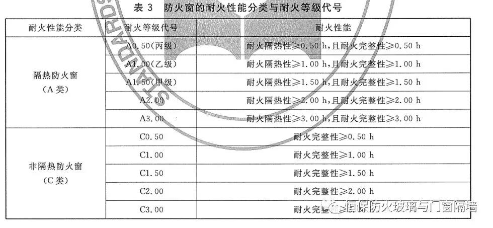 備注:根據(jù)國(guó)家標(biāo)準(zhǔn)《防火窗》GB16809-2008,甲級(jí)防火窗的耐火性能分類與耐火等級(jí)的規(guī)定:耐火隔熱性≥1.50h,且耐火完整性≥1.50h的耐火等級(jí)代號(hào)是A1.50(甲級(jí));耐火完整性≥1.50h的耐火等級(jí)代號(hào)是C1.50。所以我們常說(shuō)的甲級(jí)防火窗是指耐火隔熱性≥1.50h,且耐火完整性≥1.50h的防火窗。
